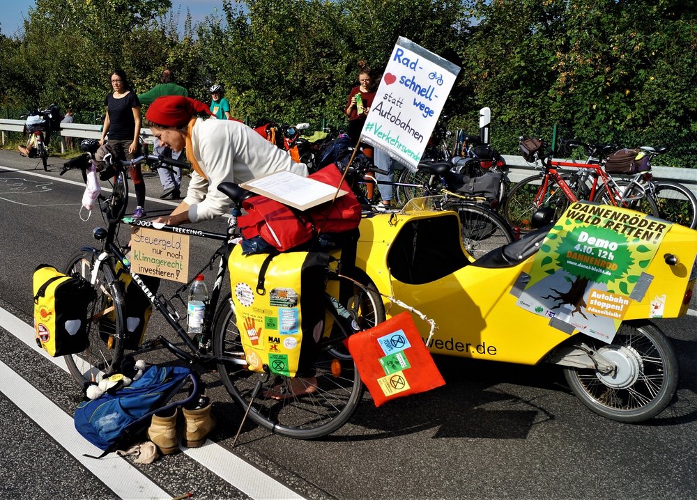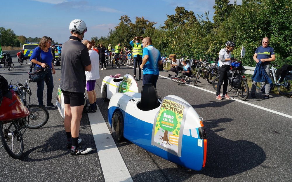 Die Proteste gegen den Weiterbau der A49 gehen weiter: Ausbaugegner legten die A49 in Richtung Süden mit einer Fahrraddemo lahm. Mehr als 400 Radler sind am Samstag auf einer genehmigten Route über die A49 gefahren.