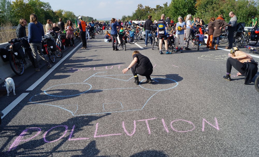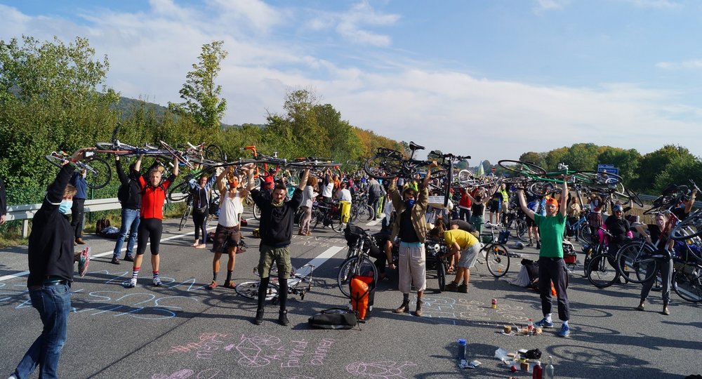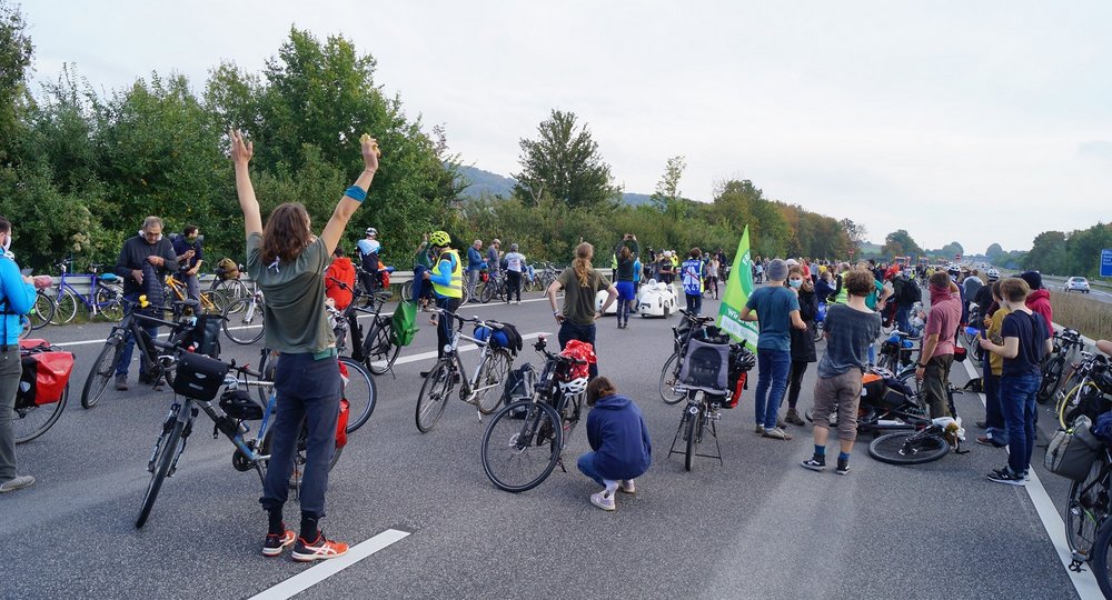 Gestartet ist die Fahrraddemonstration in Kassel. An der Ausfahrt Gudensberg (Schwalm-Eder) legten die Demonstranten für diverse Aktionen und Redebeiträge einen Stopp ein. Einige Demonstranten fuhren die gesamte Strecke. Andere Teilnehmer fuhren auf einer Teilstrecke. Auf Grund dieser Tatsache dürfte sich eine höhere Teilnehmerzahl ergeben.