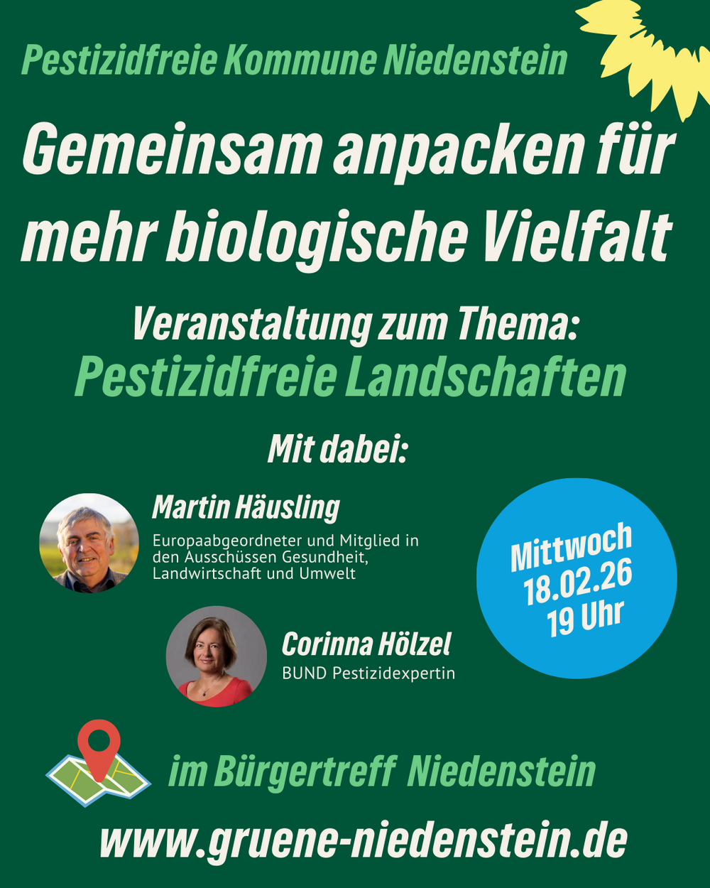 Als Gesprächsgäste begrüßen wir den Europaabgeordneten Martin Häusling sowie die Pestizidexpertin Corinna Hölzel (BUND), der Landschaftspflegeverband Schwalm-Eder e.V. ist angefragt. Vor allem aber zählt Ihre Meinung: Fragen, Anregungen und auch kritische Perspektiven sind ausdrücklich willkommen.
