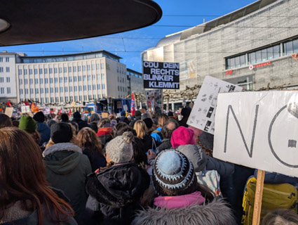 Auch in Kassel fand am 02.02.2025 eine Kundgebung auf dem Königsplatz statt, bei der (laut hessenschau) rund 6.000 Menschen unter dem Motto „Brandmauer wieder aufbauen“ demonstrierten.