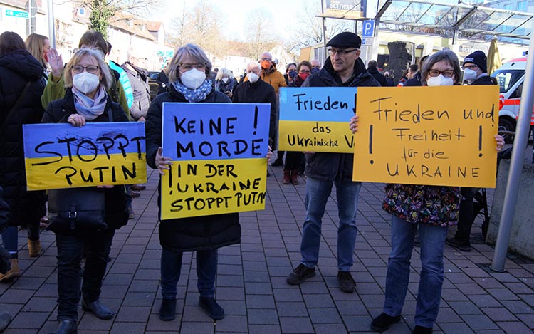 Am Samstag, den 26.2.22 fand eine Mahnwache und Kundgebung in Gudensberg vor dem Rathaus statt, um ein Zeichen der Solidarität mit der Ukraine zu setzen. Mehr als 450 Teilnehmer*innen kamen zu der Veranstaltung.