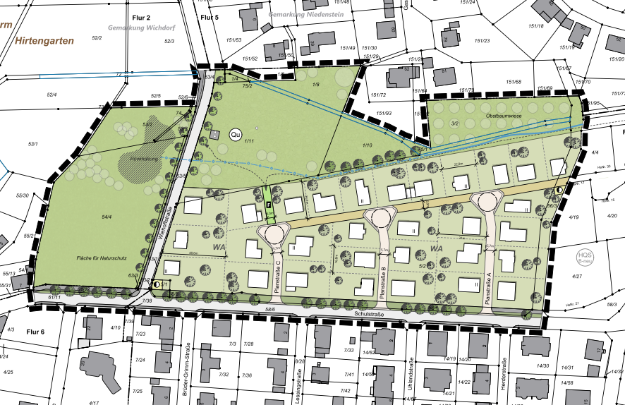 Im Bau- und Umweltausschuss am 26.02.2026 wurde die aktuelle Planung der Verwaltung für das Neubaugebiet „Auf der Hardt“ im Bereich Schulstraße/Wiehoffstraße vorgestellt. Der Entwurf wurde aus Kostengründen gegenüber früheren Planungen verändert. Sollte dieser in der Stadtverordnetenversammlung am 05.03. mehrheitliche Zustimmung erhalten, wird er zu einem konkreten Bebauungsplan weiterentwickelt.