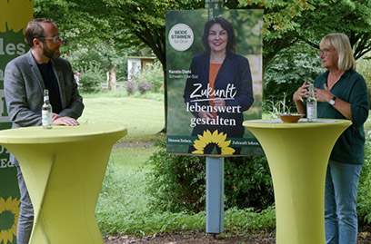 Martin Häusling (MdEP) bereicherte die Veranstaltung durch Ausführungen zu Ernteausfällen in Portugal durch Dürren und Beispiele von Wasserraub in Chile (Avocados) und Spanien (Erdbeeren). Anstatt Wasser für die Menschheit zu sichern würden „Kampftomaten“ für den globalen Markt gezüchtet. Die parlamentarische Staatssekretärin des Umweltministeriums Dr. Bettina Hoffmann erklärte die Wasserstrategie der Bundesregierung, sowie die Wichtigkeit des Nature Restoration Law - dieses Gesetz verpflichtet alle EU-Mitgliedsstaaten, zerstörte Natur in einen guten ökologischen Zustand zurück zu bringen und so den Bestand von Bestäubern, natürlichen Ressourcen, sauberer Luft und sauberem Wasser zu sichern.