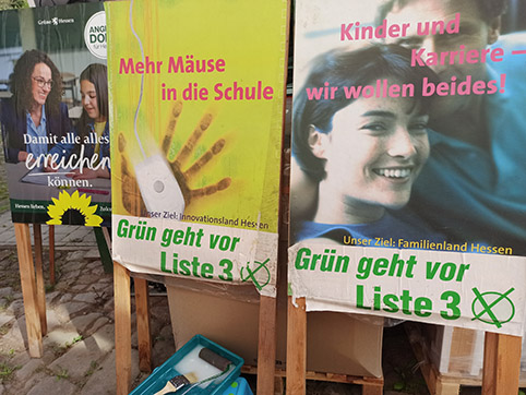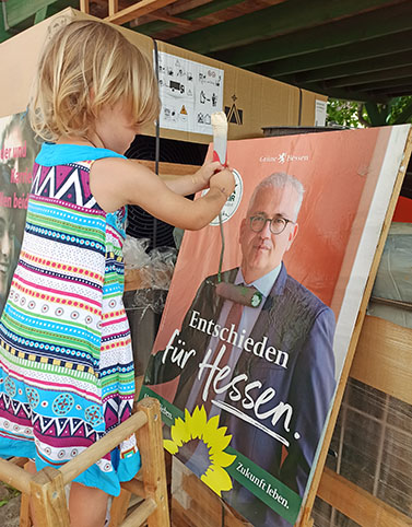 Voller Zuversicht stürzte sich der Niedensteiner Ortsverband Bündnis 90 / Die GRÜNEN ab Ende August in die Vorbereitungen zur Hessischen Landtagswahl am 08. Oktober. Bei der Plakatierung der Ortsteile halfen alle mit – auch die Kleinsten hatten Spaß am Kleistern. Durch ein ehemaliges Mitglied der GRÜNEN Fraktion kamen hierbei auch alte Wahlplakate zutage, deren Aussagen heute noch genauso aktuell sind wie damals. Politikgeschichte hautnah…